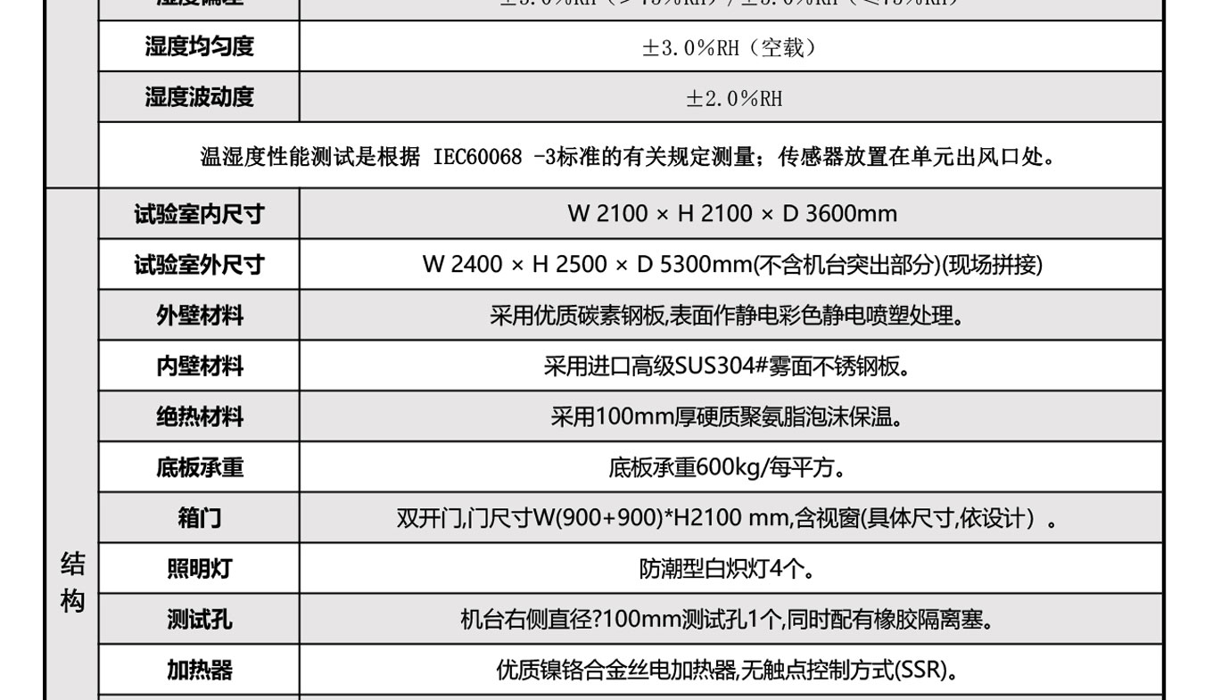 內箱尺寸:W 2100 × H 2100 × D 3600mm