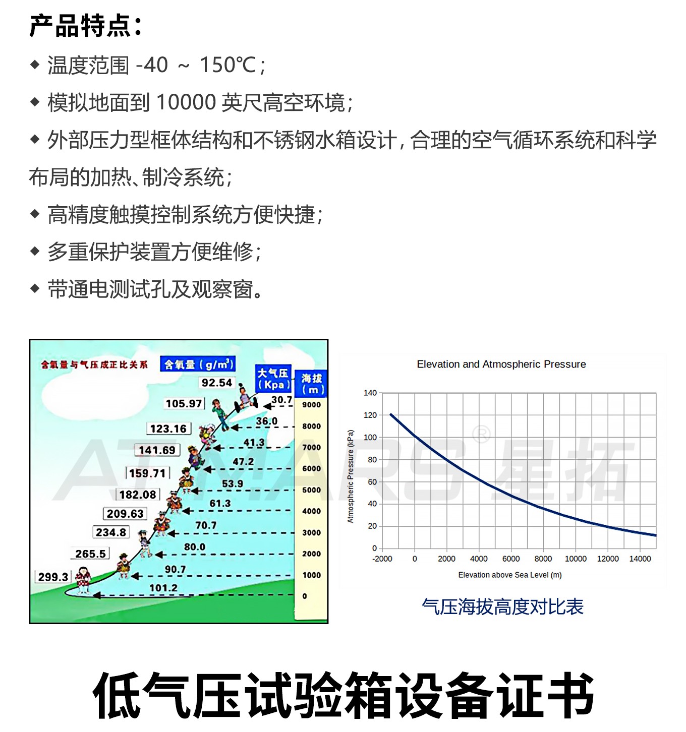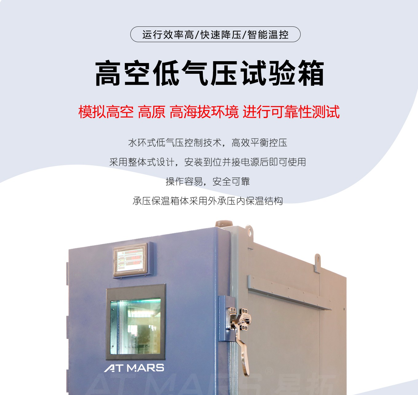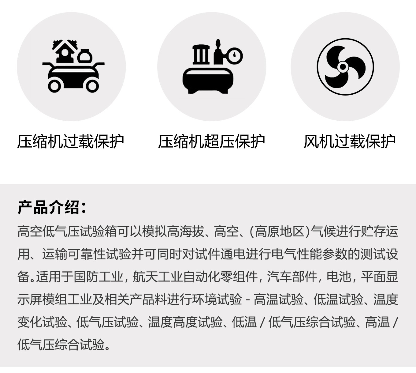 高空低氣壓快猫网站入口、高原環境氣候倉、海拔溫度試驗室、高低溫濕熱低氣壓快猫网站入口、高低溫低氣壓試驗機。可模擬高海拔、高空、(高原地區)氣候進行貯存運用、運輸可靠性試驗並可同時對試件通電進行電氣性能參數的測試設備。