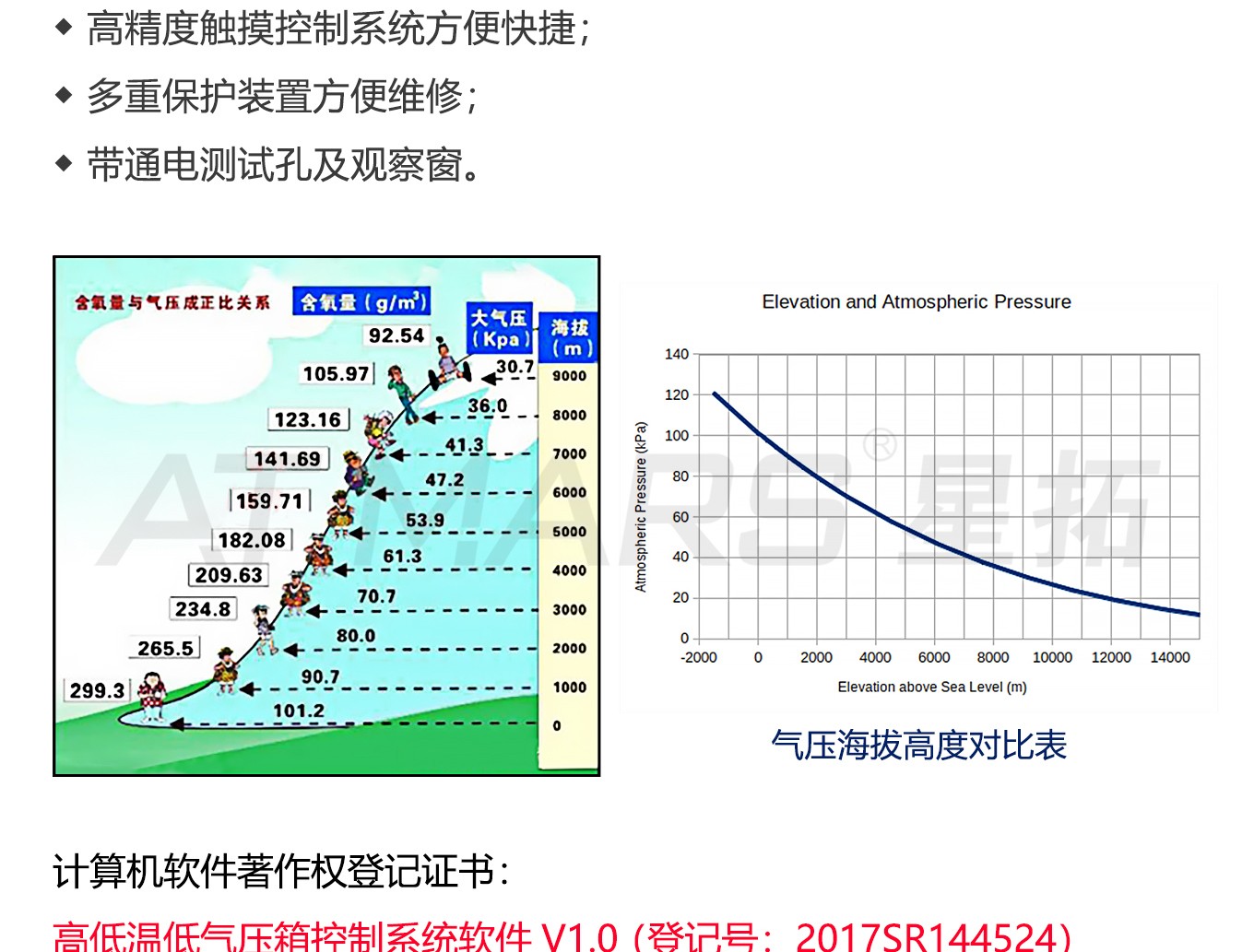 高低溫低氣壓快猫网站入口,可叫做海拔溫度濕度快猫网站入口、高空低氣壓快猫网站入口、高原環境氣候倉、海拔溫度試驗室、高低溫濕熱低氣壓快猫网站入口、高低溫低氣壓試驗機。可模擬高海拔、高空、(高原地區)氣候進行貯存運用、運輸可靠性試驗並可同時對試件通電進行電氣性能參數的測試設備。