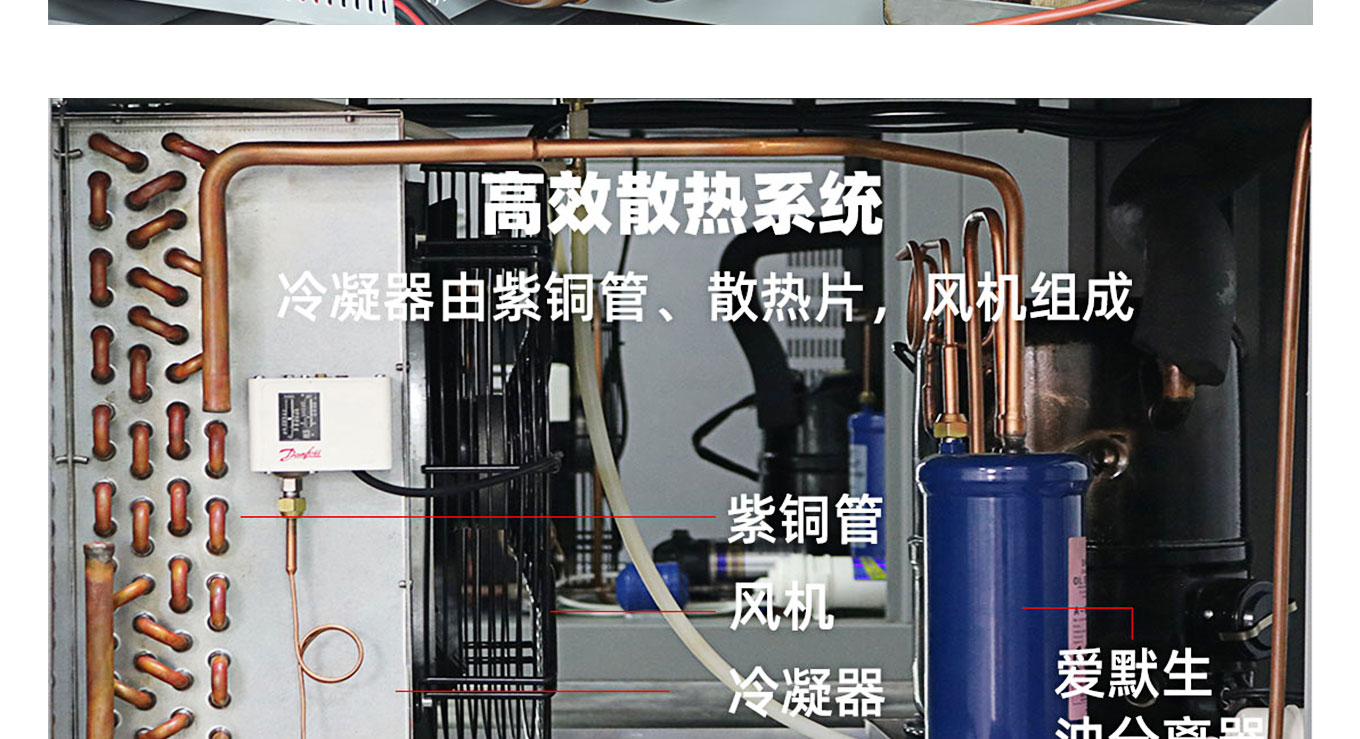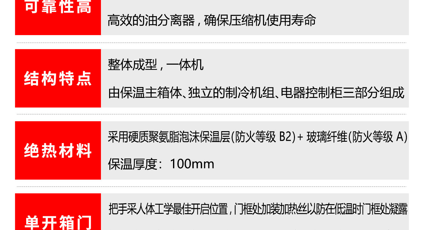 1.整體成型,一體機,快猫网站入口由三部分組成:保溫主箱體、獨立的製冷機組、電器控製櫃組成。