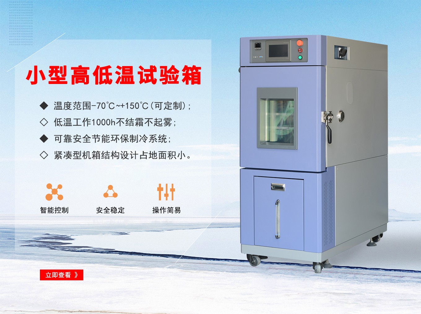 小型高低溫快猫网站入口,又稱高低溫試驗機、高低溫實驗箱、高低溫交變快猫网站入口、高低溫箱,適用於對電工、電子及其他產品、零部件及材料進行高溫或低溫試驗,以及高低溫循環試驗的環境快猫网站入口設備,快猫网址在线观看高低溫快猫网站入口設計符合GB國標技術標準《GB/T 10592-2008 高低溫快猫网站入口技術條件》。