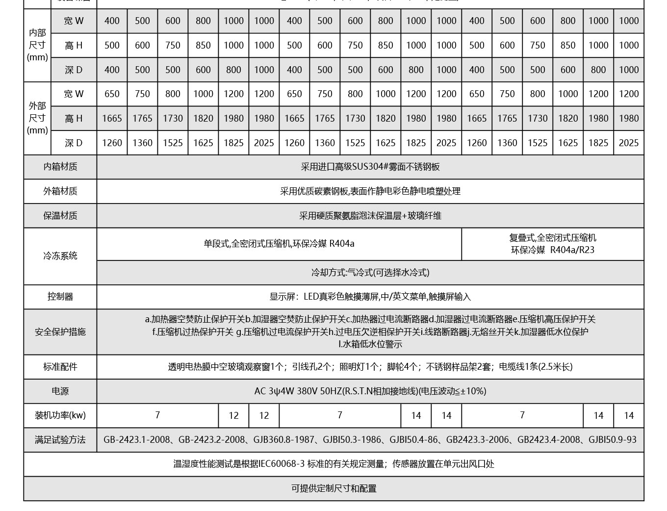 溫度範圍:-20℃/-40℃/-60℃/-70℃~+150℃