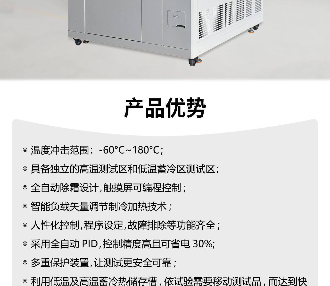 四廂式冷熱衝擊快猫网站入口為航天、航空、電子、汽車、電池等產品與質檢所、研究院、高等院校等試驗單位,提供虛空間模擬真實環境,對產品檢驗、研發成果的驗證,快猫网站入口是縮短開發周期,提升產品質量與可靠性不可缺的得力助手。
