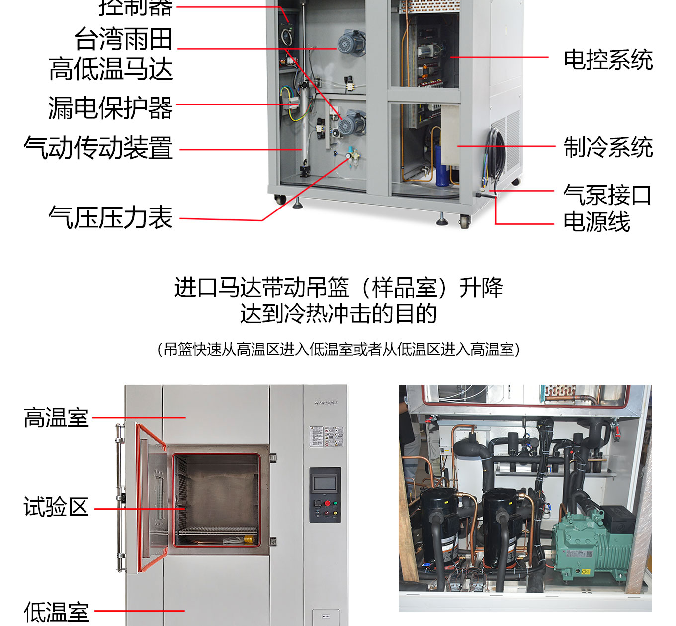 四廂式冷熱衝擊快猫网站入口,又稱高低溫衝擊快猫网站入口、冷熱衝擊快猫网站入口、冷熱衝擊試驗機,適用於對電工、電子及其他產品、零部件及材料進行高低溫溫度冷熱衝擊試驗的環境快猫网站入口設備,可滿足電工電子產品及軍用設備等環境試驗 - 高溫試驗/低溫試驗/溫度變化試驗/高低溫衝擊試驗/溫度衝擊試驗/冷熱衝擊試驗。