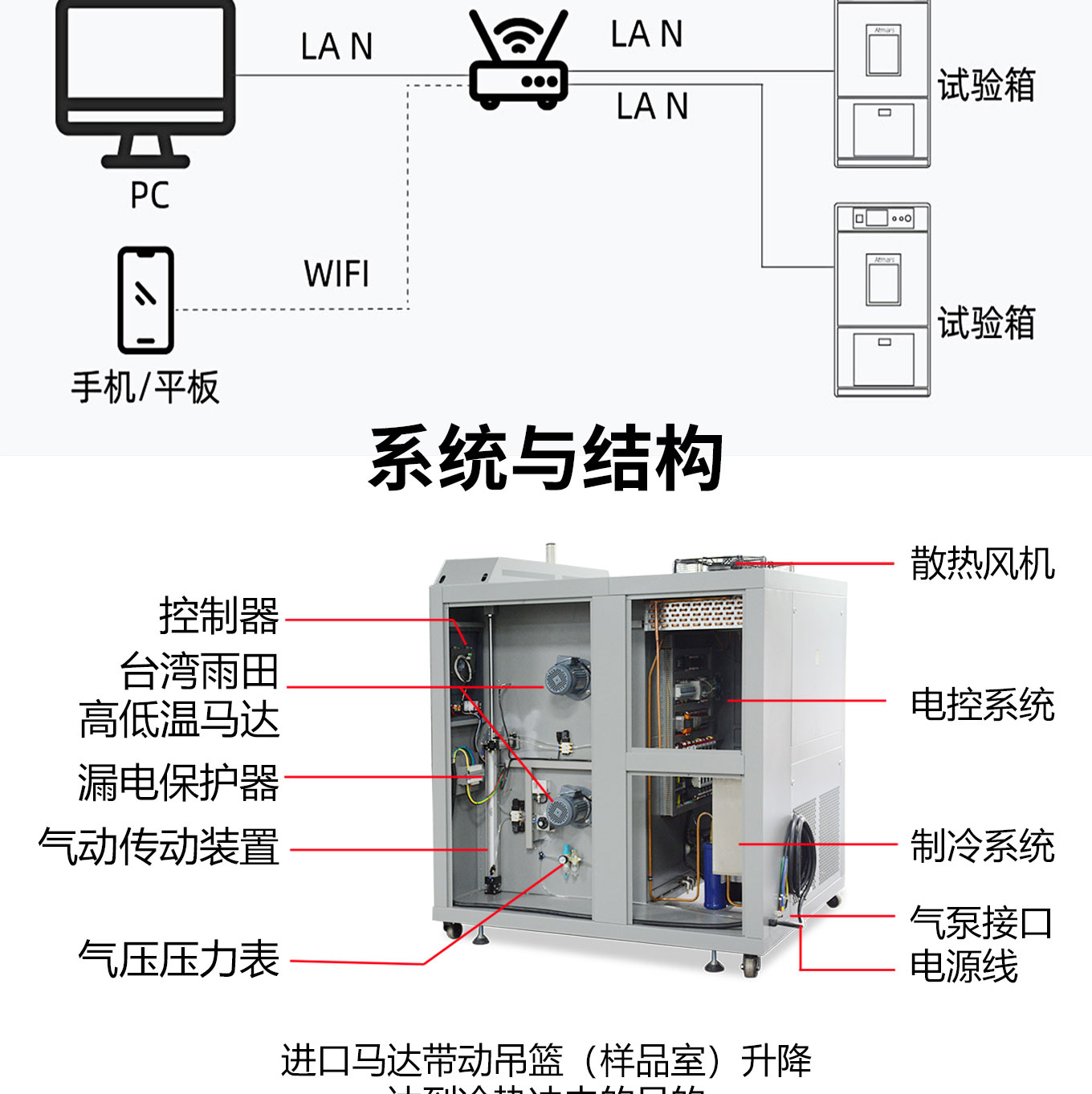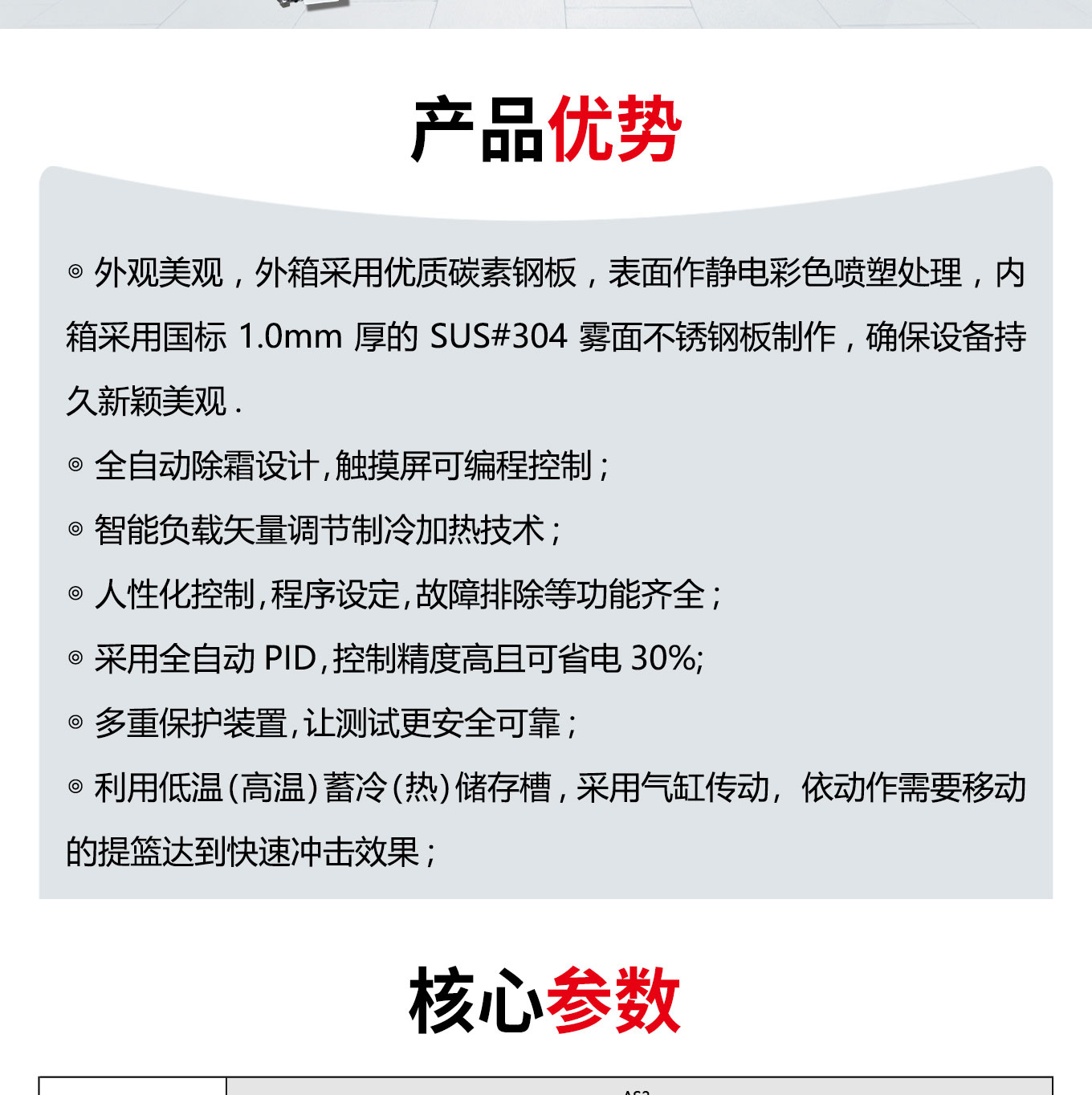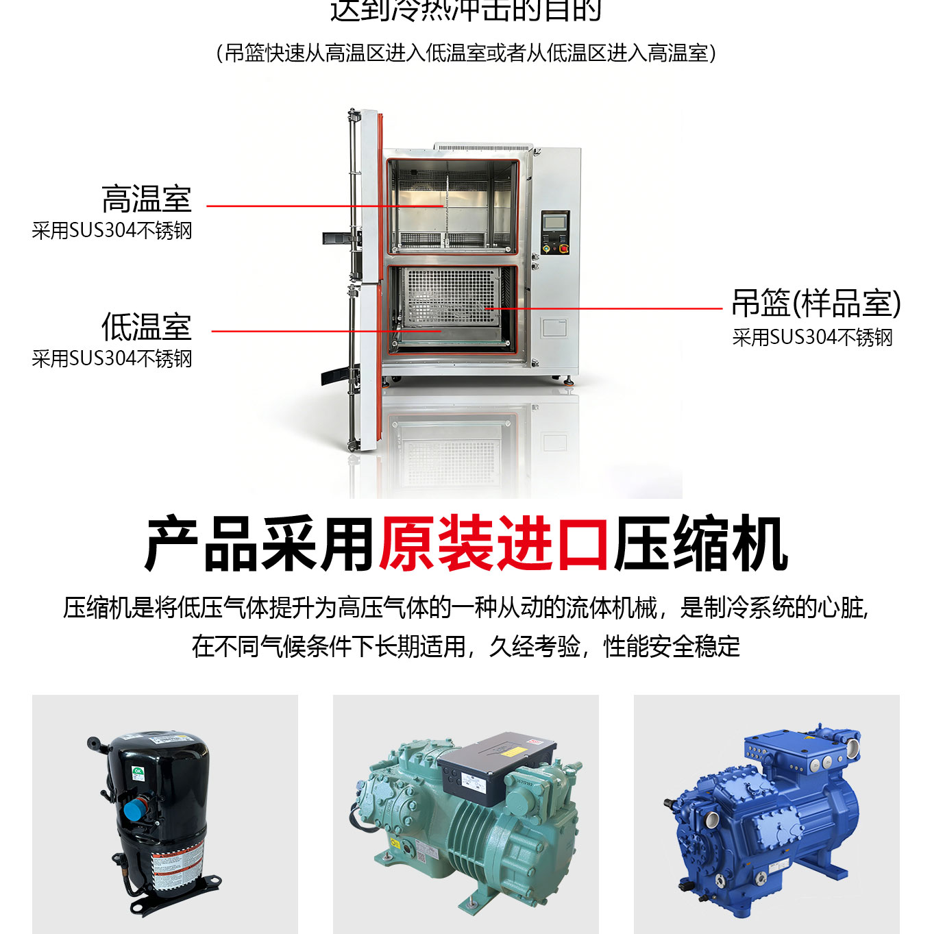 兩槽式冷熱衝擊快猫网站入口,又稱高低溫衝擊快猫网站入口、冷熱衝擊快猫网站入口、冷熱衝擊試驗機,適用於對電工、電子及其他產品、零部件及材料進行高低溫溫度冷熱衝擊試驗的環境快猫网站入口設備,可滿足電工電子產品及軍用設備等環境試驗 - 高溫試驗/低溫試驗/溫度變化試驗/高低溫衝擊試驗/溫度衝擊試驗/冷熱衝擊試驗。