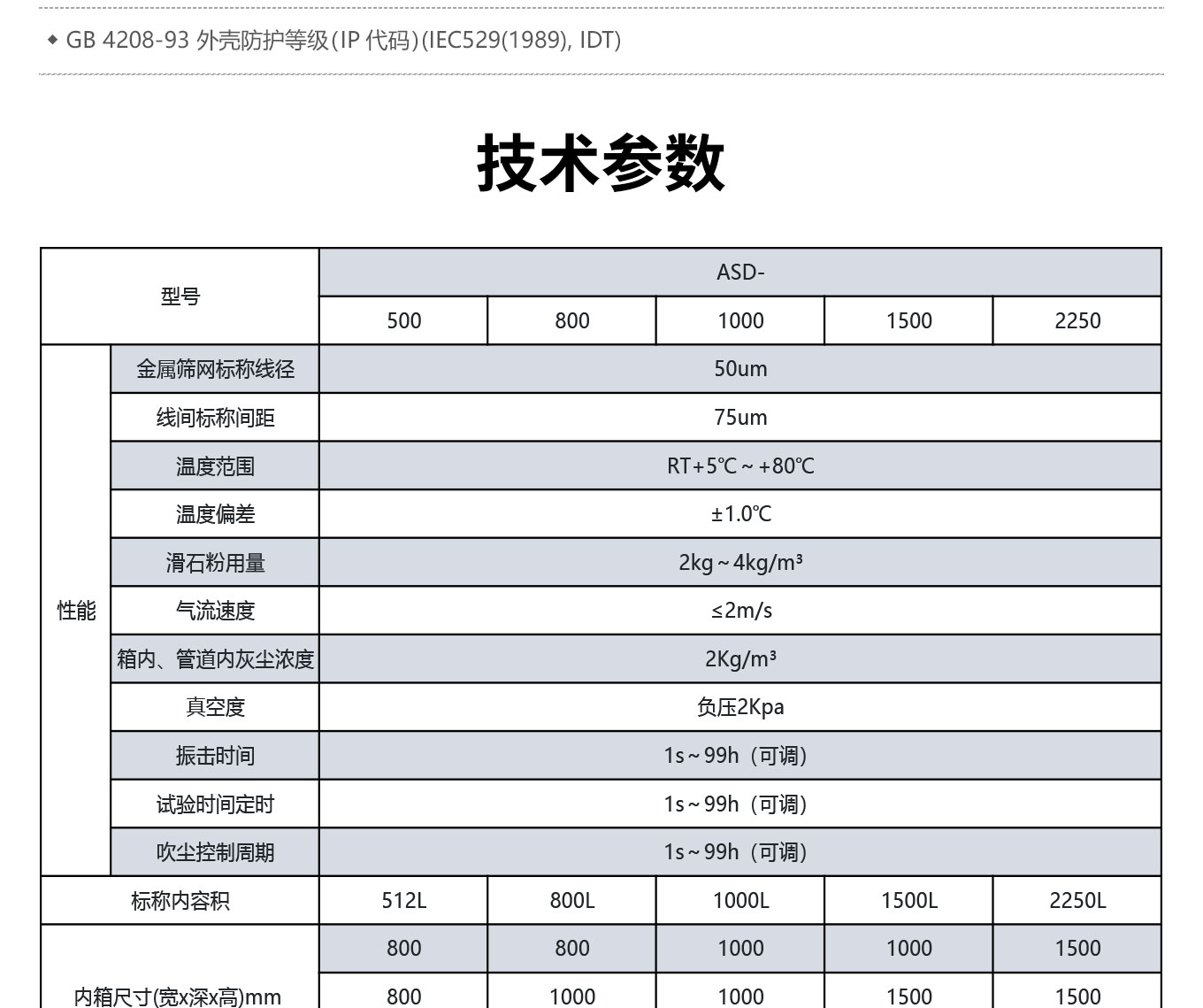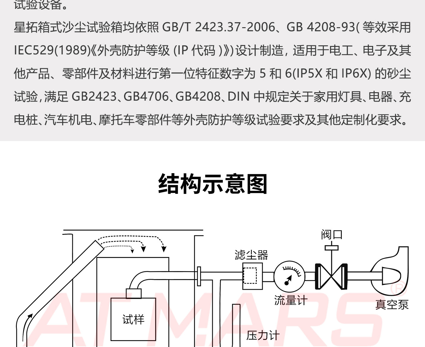 快猫网址在线观看箱式沙塵快猫网站入口均依照GB/T 2423.37-2006、GB 4208-93(等效采用IEC529(1989)《外殼防護等級(IP代碼)》)設計製造,適用於電工、電子及其他產品、零部件及材料進行第一位特征數字為5和6(IP5X和IP6X)的砂塵試驗,滿足GB2423、GB4706、GB4208、DIN中規定關於家用燈具、電器、充電樁、汽車機電、摩托車零部件等外殼防護等級試驗要求及其他定製化要求。