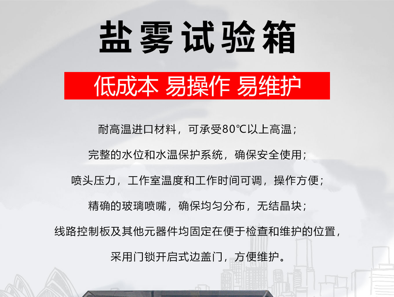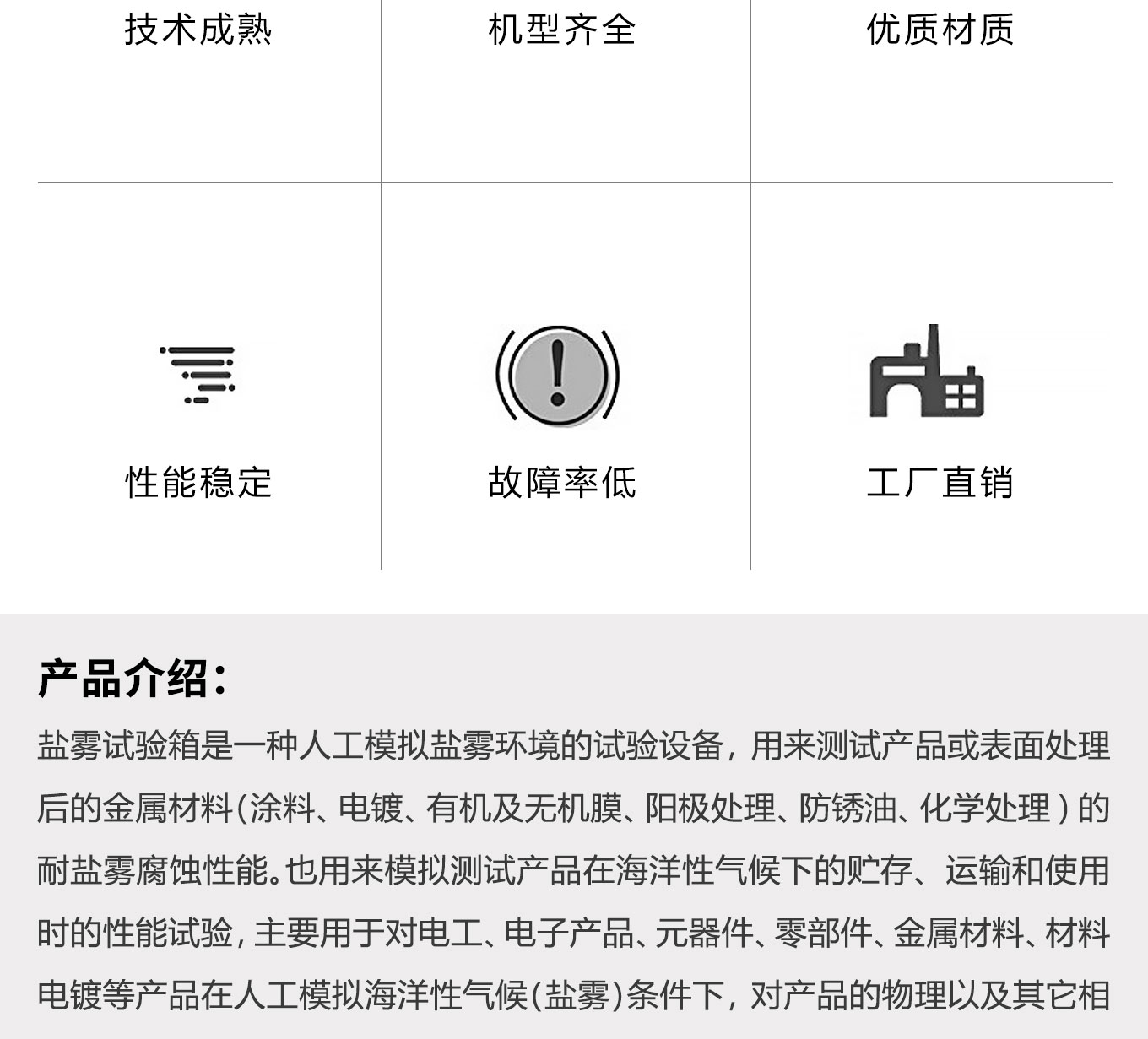 鹽霧快猫网站入口是一種人工模擬鹽霧環境的試驗設備,用來測試產品或表麵處理後的金屬材料(塗料、電鍍、有機及無機膜、陽極處理、防鏽油、化學處理)的耐鹽霧腐蝕性能。主要用於對電工、電子產品、元器件、零部件、金屬材料、材料電鍍等產品在人工模擬海洋性氣候(鹽霧)條件下,對產品的物理以及其它相關性能進行測試。