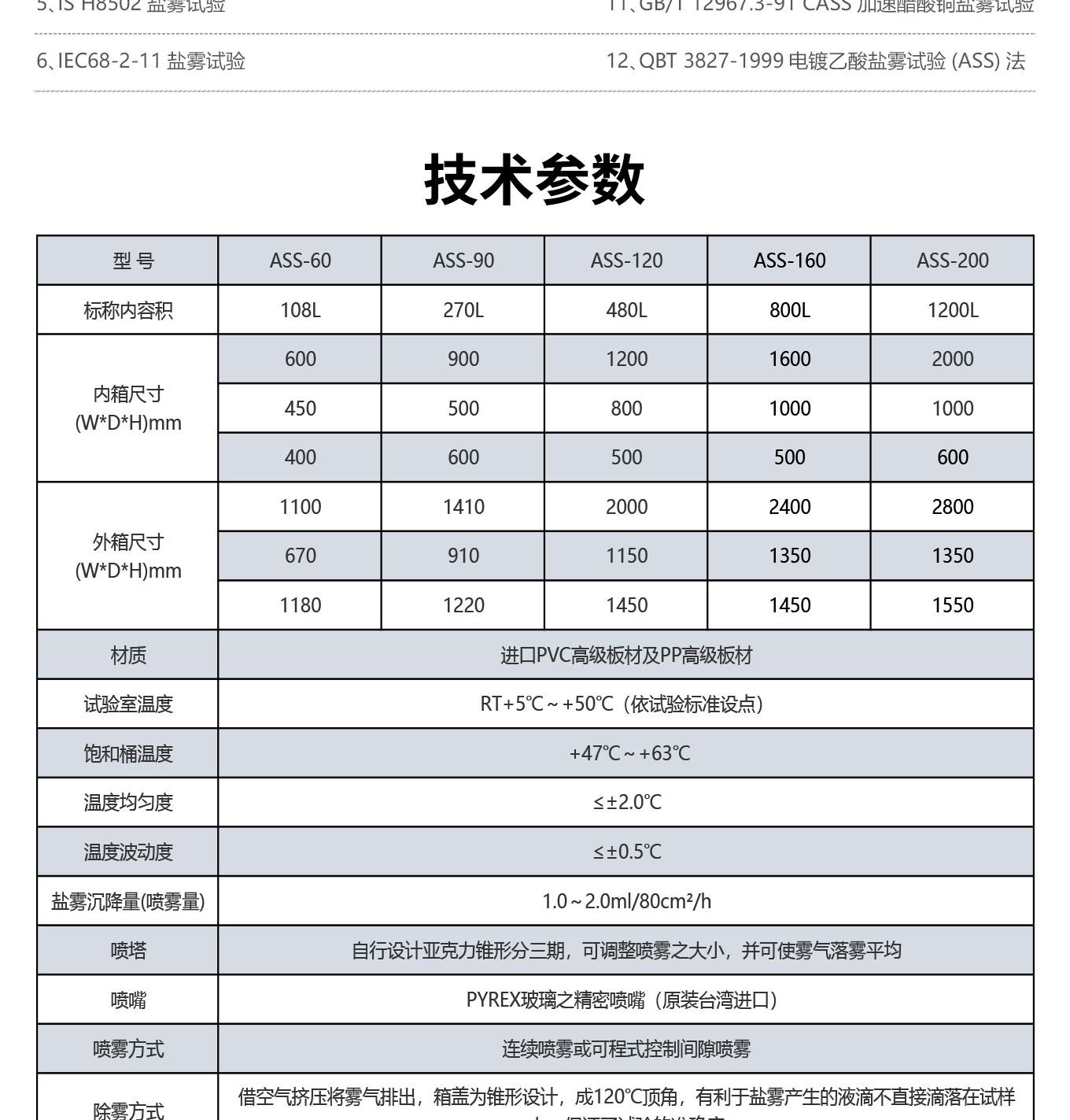 鹽霧沉降量(噴霧量):1.0~2.0ml/80cm²/h