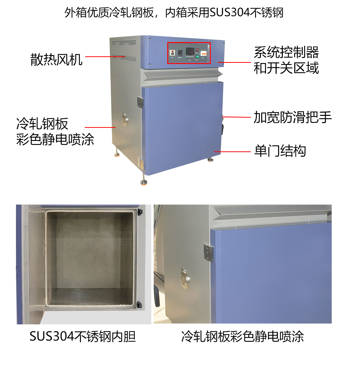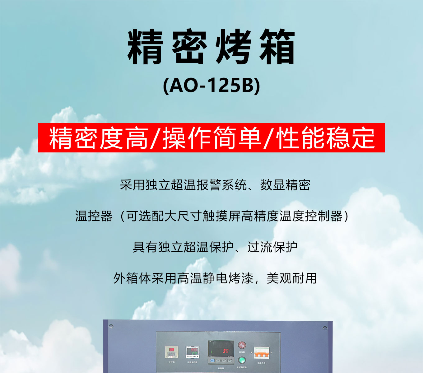 精密烤箱為落地式熱風循環幹燥箱設備選用數顯溫控係統及獨立超溫溫控器可實現設備智能溫控和安全運行,配備大流量風輪及風機確保溫度均勻分布。